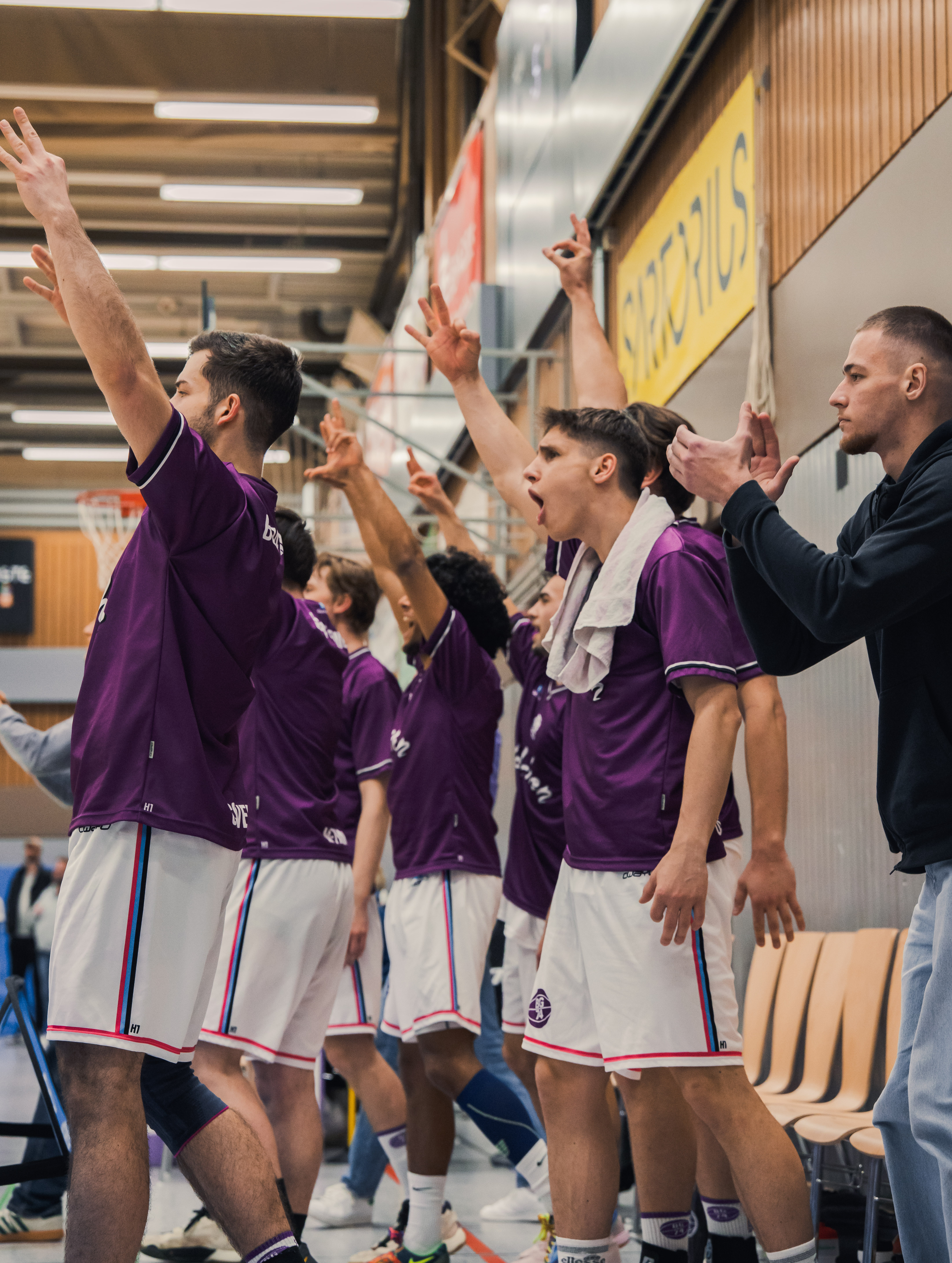 Trotz der Niederlage bleibt vor allem die Atmosphäre in Erinnerung: 800 Zuschauer*innen sorgten für eine beeindruckende Kulisse und verwandelten die Halle in eine „lila Wand“ – ein in der 2. Regionalliga außergewöhnliches Erlebnis.